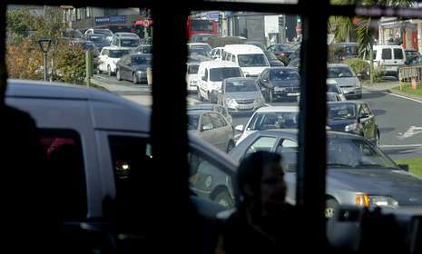 Normalidad en las líneas 14 y 22 a su paso por Ronda de Outeiro; la tubería ya esta reparada.